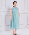 Description | This aqua tulle dress for girls by Le Mu, with floral sequins emblishment on the chest. It has a layers of green and blue tuelle and satin, with a cotton lining for comfort. There is a gold metal logo charm sewn on the waist. This sleeveless dress is lined in satin backed in soft cotton, and it fastens with a zip on the back. Comes with a pearl hanger and Le Mu dress bag |