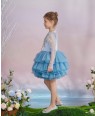 Description | This blue tulle dress for girls by Le Mu, with floral lace embroidery on the chest. It has a layers of baby blue and lake green tuelle and satin, with a cotton lining for comfort. This puff sleeves dress is lined in satin backed in soft cotton, and it fastens with a zip on the back. Comes with a pearl hanger and Le Mu dress bag |
