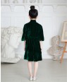 Description Girls stylish velvet dress by Le Mu. puff sleeves with dramatic bow decorate on the front. green velvet dress lined in soft cotton for comfort. Fastens with button on the front and comes with a pearl hanger and Le Mu dress bag.