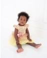 A timeless classic dress for any and all occasions. This statement signature dress has gold lace with flora detail decorated on the waist line. This gold beauty sleeveless dress falls above knee dress and is lined in satin backed in soft cotton. It fastens with a zip on the back and comes with a pearl hanger, matching knickers and Le Mu dress bag
