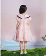 Description | Girls stylish brocade and tulle dress by Le Mu. A pink brocade with pink crystals detail on each side shoulder ,navy ribbon detail around collar and decorate on the chest. on bottom of skirt, pink brocade with pink tuelle give the dress full of layers and lined in soft cotton for comfort. Fastens with a zip on the back and comes with a pearl hanger and Le Mu dress bag. |
