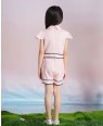 Description | Girls stylish linen playsuit by Le Mu. navy trimmed detail on the body and sequin detail on the collar give playsuit elegant feeling. this navy ribbon pink playsuit lined in soft cotton for comfort. Fastens with a zip on the back and comes with a pearl hanger and Le Mu dress bag. |