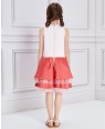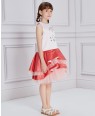 Description | Girls stylish satin and tulle dress by Le Mu. A soft pink satin on the top of the dress with shiny sequin detail on the chest.. on bottom of skirt, red satin with pink tuelle give the dress full of layers and lined in soft cotton for comfort. Fastens with a zip on the back and comes with a pearl hanger and Le Mu dress bag. |