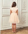 A stunning occasion princess dress by Le Mu, made in navy satin with cap sleeves, each side has amazing pearl detail. The distinct feature of this elegant dress is shining lace cover all the body. This beautiful dress is lined in satin backed in soft cotton, and fastens with a zip on the back. Comes with a pearl hanger and Le Mu dress bag