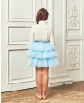 Girls blue tulle special occasion skirt by LeMu. The overlay is made in soft blue tulle, with an blue lining underneath. The skirt is fully lined in soft viscose twill.