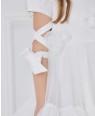 Description | A gorgeous baby white dress made with luxury soft satin with handmade organza flora decorate the chest and puff sleeves with ribbon detail around arm. The short sleeve dress falls above knee dress and is lined in satin backed in soft cotton. It fastens with a zip on the back and comes with a pearl hanger and Le Mu dress bag. |