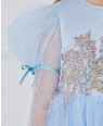 Description | This pink tulle dress for girls by Le Mu, with floral lace embroidery on the chest, blue mesh puff long sleeves with green ribbon details. It has a layers of blue tulle and satin, with a cotton lining for comfort. This dress is lined in satin backed in soft cotton, and it fastens with a zip on the back. Comes with a pearl hanger and Le Mu dress bag |