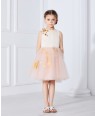 Description Girls gorgeous pink dress by Le Mu, made in soft satin with layers of tulle. It has beautiful beaded flowers across one shoulder and gold velvet shells on the layered tulle skirt. The dress is lined in cotton and fastens with a zip on the back.Come with hanger and dust bag.