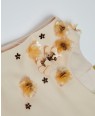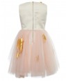Girls gorgeous pink dress by Le Mu, made in soft satin with layers of tulle. It has beautiful beaded flowers across one shoulder and gold velvet shells on the layered tulle skirt. The dress is lined in cotton and fastens with a zip on the back.Come with hanger and dust bag.